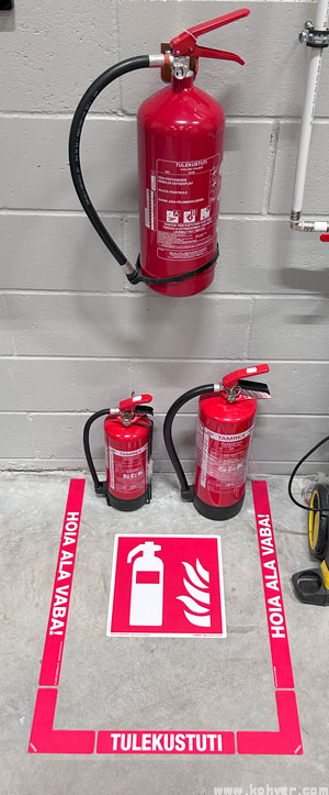 Põrandakleebis: Tulekustuti. Hoia ala vaba! Piiratud ala tähistamine 600x770mm.